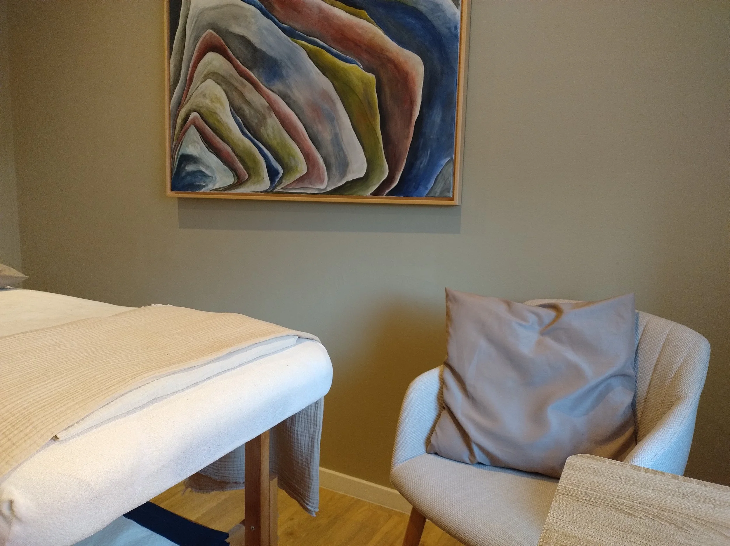 Mein Lehrerinnen-Arbeitszimmer habe ich Schritt für Schritt in einen Raum mit einer Liege verwandelt, in dem ich die uralte japanische Kunst Jin Shin Jyutsu praktiziere - sie wird mit „Kunst des Schöpfers durch den wissenden, mitfühlenden Menschen“ übersetzt und auch „Strömen“ genannt. Seit Mai 2024 wende ich Jin Shin Jyutsu regelmäßig an, denn es ist mir zu einer Herzensangelegenheit geworden!